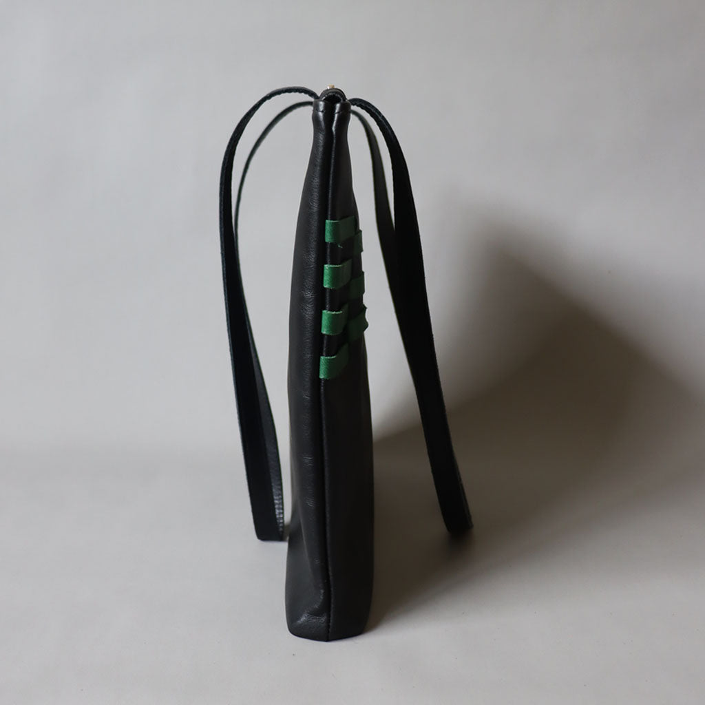 Black/green leather hand woven shoulder bag.